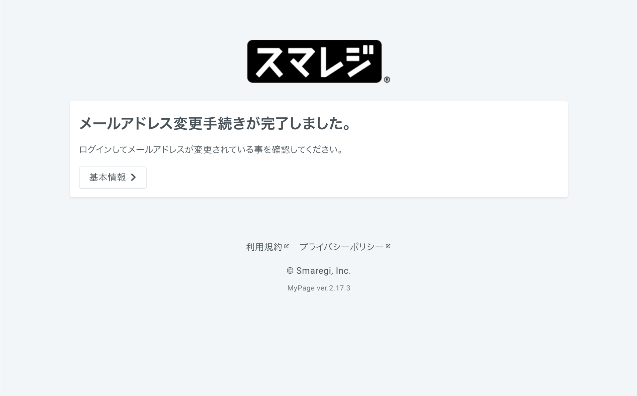 変更手続き完了の画面が表示され、メールアドレスの変更が完了します。