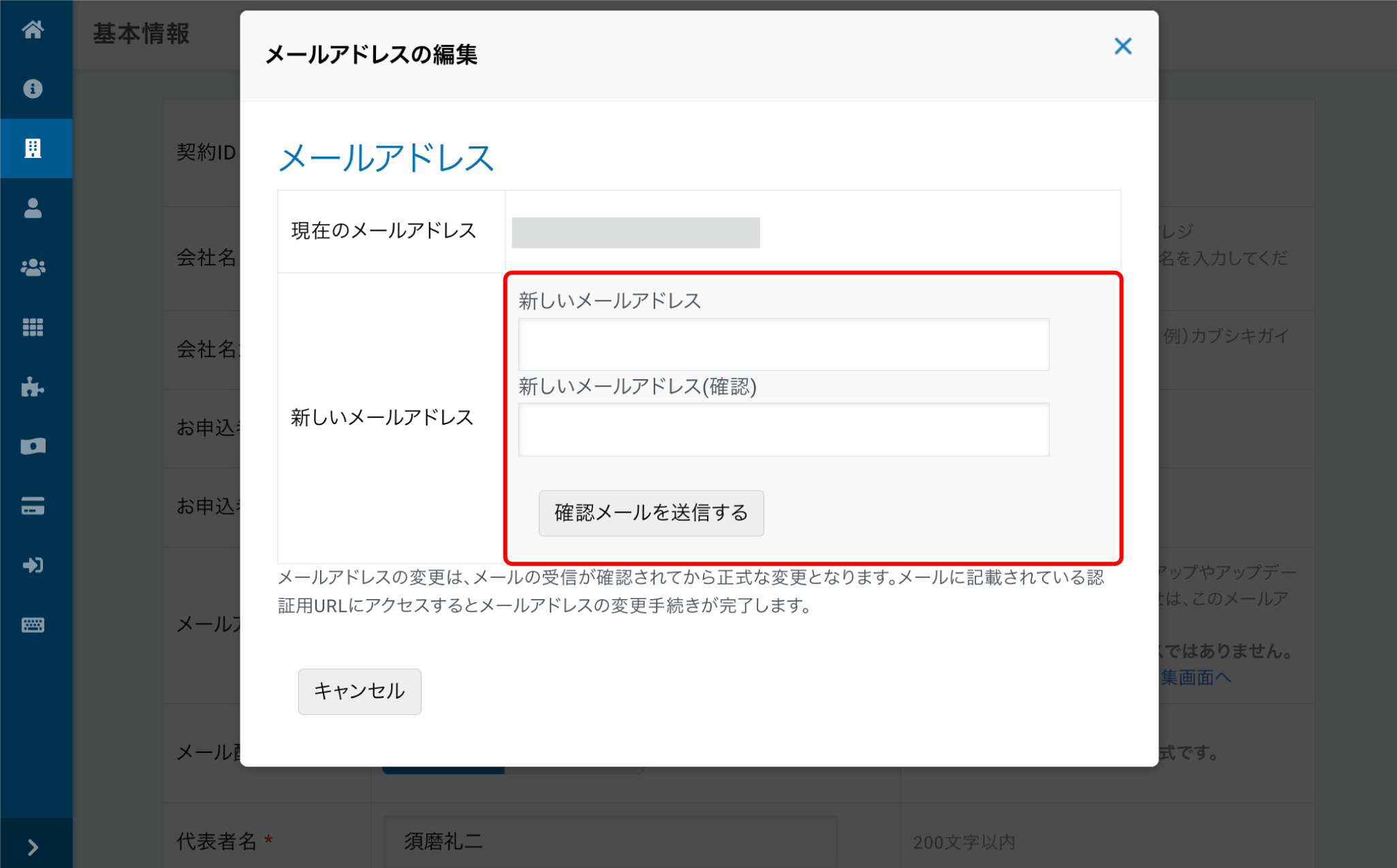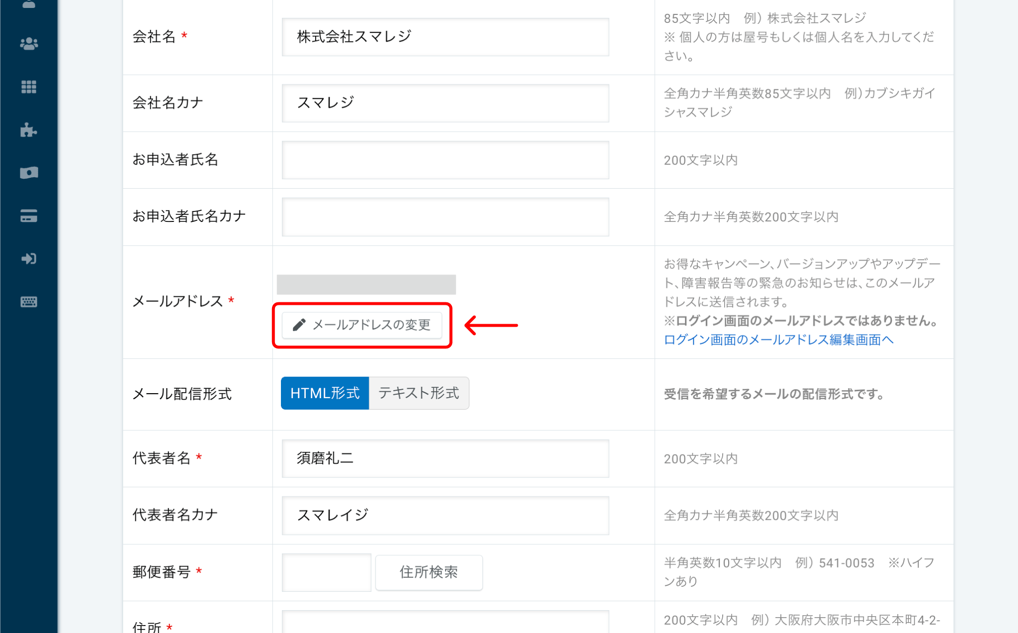 【メールアドレスの変更】をクリックします。 -