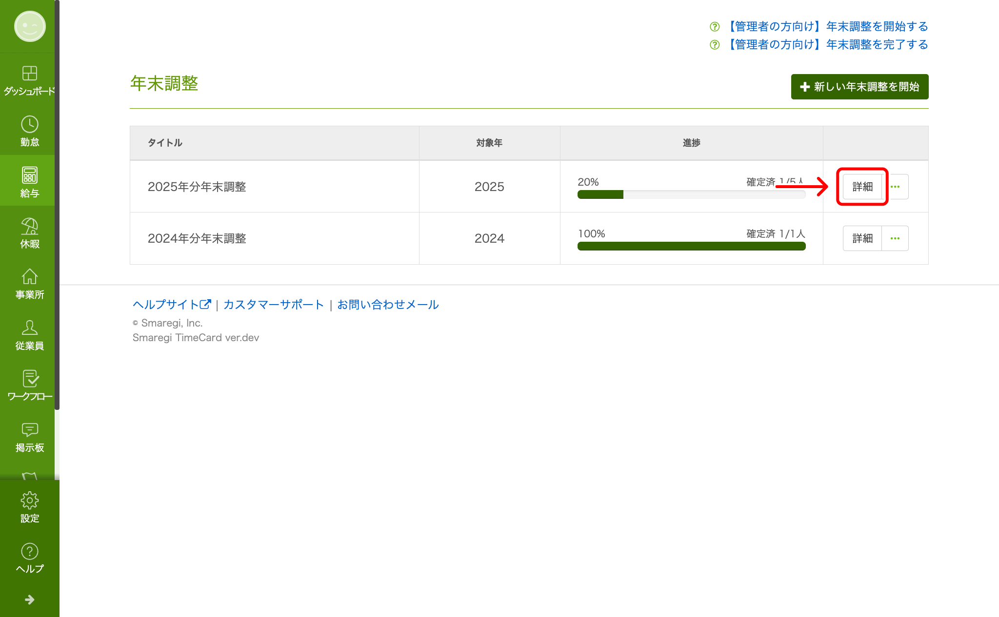 『給与> 年末調整 > 年末調整』をクリックします。 -